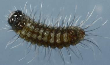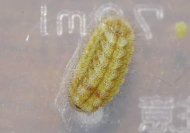 (参考) 孵化直後の幼虫(1齢、1.2mm) 2006年5月9日 岡山県瀬戸内市邑久町産 大阪市淀川区飼育 上記の卵は結局孵化しませんでしたが、同じ房にあった既に産まれていた卵が今日孵化しました。かなり毛の長い幼虫です。 トップページへ |