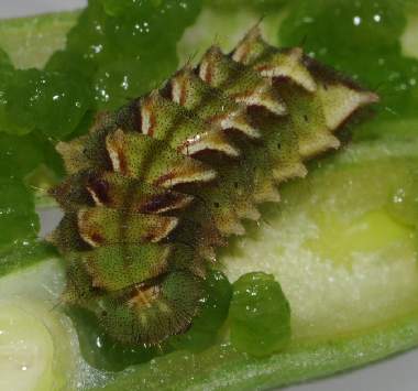 2006年5月17日 大阪府豊中市産 大阪市淀川区飼育 これから蕾に食いつこうとしているところです。 トップページへ |