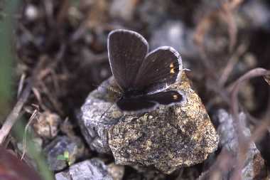 日光浴(春型♀) 2004年4月24日 大阪府豊中市服部緑地公園 豊中市加藤氏撮影 春型のツバメシジミ♀は次写真の秋型と異なり青い鱗粉がありきれいです。 トップページへ |