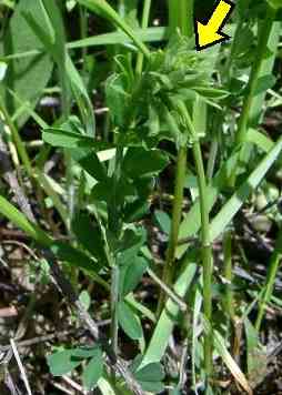 卵(ヤハズソウ?メドハギ?) 2003年9月29日 大阪市淀川区 我がバタフライガーデンでまた産卵を観察できました。ヤハズソウとメドハギの中間の植物です。矢印のところに卵があります。 トップページへ |