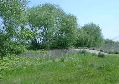 棲息環境 2003年5月2日 大阪府摂津市一津屋 写真左の林の右側あたりに、上の写真で示した植物が生えています。この写真右に淀川が流れ、林の左側は河川敷公園です。 トップページへ |