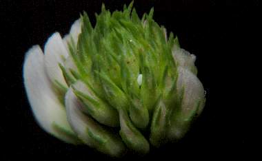 2002年10月11日 大阪市淀川区西中島 淀川の右岸の河辺で見つけた♀です。近くにはヤハズソウが多いのですが、結局産卵してくれませんでした。網掛けで強制産卵したところ、ヤハズソウの新芽とシロツメクサの花に産卵しました。飼育経過を下に示します。 トップページへ |
