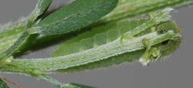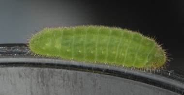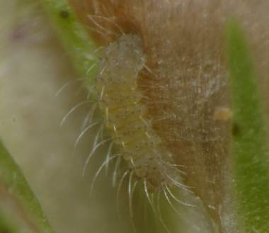 ツバメシジミの幼虫(1齢、シロツメクサ)