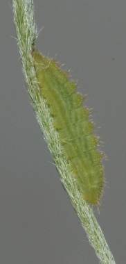 幼虫(1齢) 2002年10月17日 大阪市淀川区西中島産♀強制産卵 淀川区飼育 ヤハズソウの葉の裏に潜む幼虫です。時期が遅いせいか、あまり食い付きはよくありません。 トップページへ |