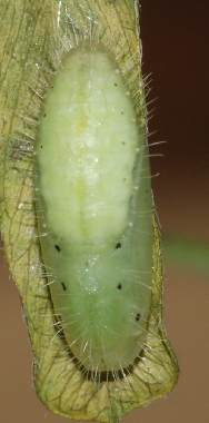 2007年7月27日 大阪府豊中市服部緑地公園 産 大阪市淀川区飼育 メドハギの葉表で前蛹になりました。 トップページへ |