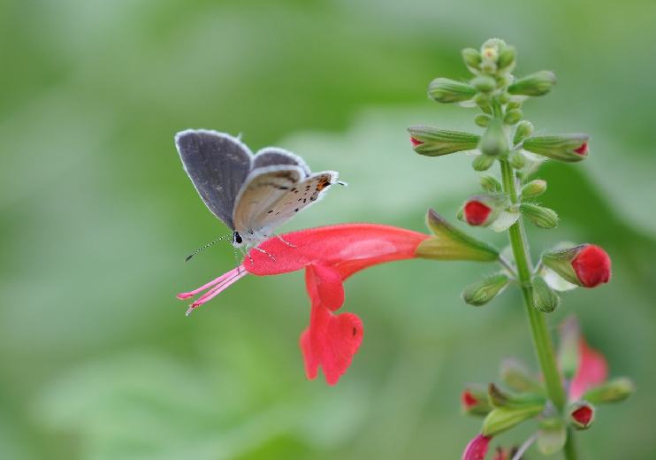ツバメシジミは大阪市内でもまだ比較的よく見られます。それでもみられるのは比較的草原的環境が残されているところだけでしょう。ヤマトシジミに似ているので飛んでいるときには区別が難しいですが、裏面の赤い斑紋とツバメの語源となっている尾状突起がアクセントで気に入っています。 こちらのページには静岡市のツバメシジミをまとめています。 |
