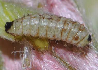 (参考) 孵化後成長したウラナミアカシジミの幼虫(1齢、アラカシ) 2015年3月25、28日 撮影 茨城県牛久市 産 静岡市駿河区 飼育 個体2、3:頭を芽に突っ込んで食べています。成長すると白くなります。そうなるともうすぐ眠に入ります。 トップページへ |