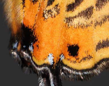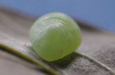 (参考) ウラナミアカシジミの卵(0.7mmφ) 2014年11月19日 撮影 茨城県牛久市 母蝶採集、人工採卵 by K氏 静岡市駿河区 飼育 茨城県の母蝶から採卵された卵を入手しました。ウラナミアカシジミは、卵を産んだ後、枝の付着物を卵に付けて隠すことが知られています。そのため自然状態で卵を見つけるのは極めて難しいそうです。写真上2枚は入手時の状態、下2枚は水を付けた筆で少しこすった後の状態です。 トップページへ |