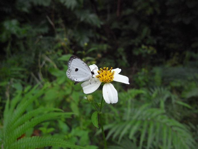 (参考) リュウキュウウラボシシジミの吸蜜(♂) 2011年11月21日 沖縄県西表島 たまに日ざしが出る曇りの日でした。道沿いの日陰に咲く、白い花で吸蜜する場面に何度も遭遇できました。花の同定ははっきりしませんが、上から、タデ科の一種、オオバナノセンダングサ、シソ科の一種としておきます。この場所では、狭い領域を2♂が時たま争い、負けた方がベストポジションを諦めてシソ科の花で吸蜜にいそしむようになりました。白い花を選ぶのは、敵からの隠蔽のためと想像しています。特にオオバナノセンダングサに止まっている場合には気付かないときがありましたから。 トップページへ |