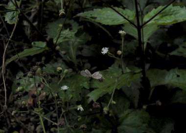 (参考) 半開してテリトリーを見張る成虫(♂)と環境 2011年11月21日 沖縄県西表島 占有行動をとるときは翅を半開することがたびたび観察されました。この半開の姿勢は、後翅を前翅よりも広く開き、尾部を上げている独特のものです。 トップページへ |