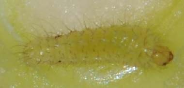 (参考) 脱皮後少し成長した幼虫(2齢、3.4mm、インゲン) 2014年4月10日 撮影 沖縄県西表島 産 静岡市駿河区 飼育 個体2:あいかわらずあまり豆は食べず周りのゲル状の部位を食べています。 トップページへ |