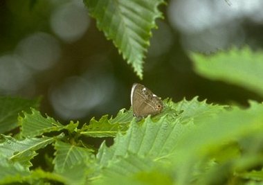 (参考) 静止(上:♂、下:♀) 1990年7月7日 滋賀県 比良山系 比良山系はウラクロシジミが多産することで有名です。この写真は随分前のものですが、夕方になると多くの♂が飛び交っていました。上の写真では、ちらっと表面の白銀色が見えています。 トップページへ |