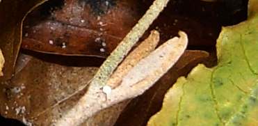 (参考) ウラクロシジミの蛹(9.5mm) 2009年4月18日 近畿地方 産 静岡市 飼育 再び個体1です。気が付かないうちに、葉裏で蛹化していました。葉をひっくり返して撮影しています。 トップページへ |