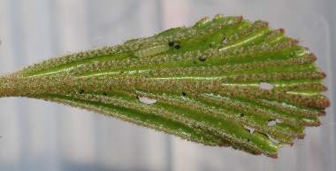 (参考) 幼虫の静止場所(1齢) 2009年4月4日 近畿地方 産 静岡市 飼育 1齢幼虫は、葉のひだの間にいます。右が頭です。 トップページへ |