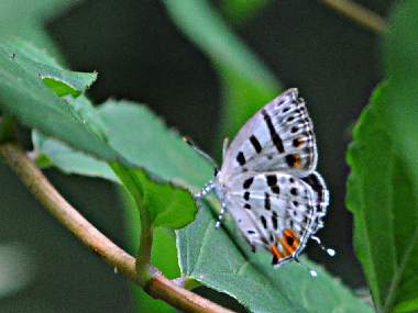 | オナガシジミと名に付く日本産の蝶は3種いていずれもゼフィルスと呼ばれる蝶群に属します。他はミズイロオナガシジミとオナガシジミです。いずれも尾状突起が比較的長いです。ウスイロオナガシジミは、オナガシジミに比べて何かが薄い色をしていることに基づくのでしょうけどどの部分か分かりません。ウスイロオナガシジミはあまりなじみが無く、大阪市周辺にはいませんが、中国山地には広く薄く分布しています。私は、岡山県北部の恩原高原、兵庫県北部、長野県で写したことがあります。ここではそれらの写真と共に、北海道産の飼育経過を載せていきます。 |