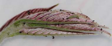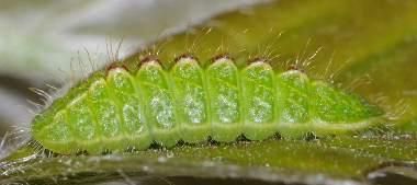 (参考) 脱皮後成長した幼虫(2齢、5.2mm、アラカシ) 2014年3月31日 撮影 北海道奥尻郡 産 静岡市駿河区 飼育 個体2:背中の赤い模様と毛が目立つようになりました。 トップページへ |