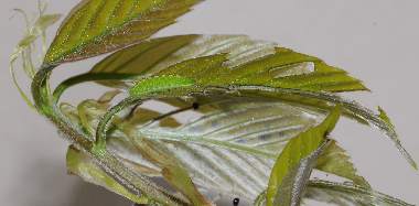 (参考) 孵化後成長した幼虫(1齢、3.1mm、アラカシ) 2014年3月28日 撮影 北海道奥尻郡 産 静岡市駿河区 飼育 個体2:残念ながら上に示した個体1は死亡しました。同時期に冷蔵庫からだし2日遅れの23日に孵化した個体です。アラカシの新芽に食いついています。 トップページへ |