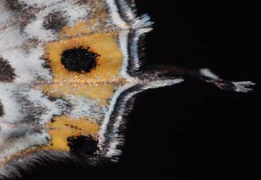 (参考) 羽化後間もないウスイロオナガシジミ 2014年4月28日 撮影 北海道奥尻郡 産 静岡県駿河区 飼育 個体2:明日の朝だと思っていたのですが、仕事から帰ると既に窓ガラスに止まっていました。窓に映ってにらめっこしているように見えます。 トップページへ |