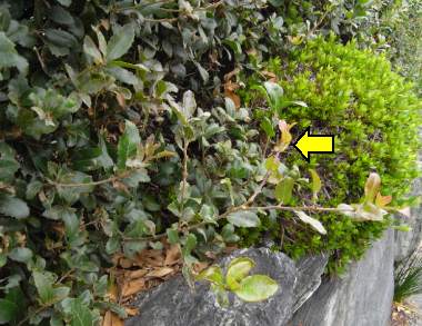 (参考) 卵と環境(ウバメガシ) 2008年11月8日 大阪府泉南郡岬町 自生も多いですが、民家の生け垣にも多く使われるウバメガシの若い芽にも多くの卵や幼虫が見つかりました。丸いのがヤクシマルリシジミの卵ですが、それ以外の昆虫の卵や幼虫も多く見つかります。 トップページへ |