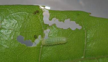 (参考) 幼虫(3齢?、7mm?、ウバメガシ) 2008年11月8日 大阪府泉南郡岬町 おそらく3齢だと思います。上が頭。芽の色に合わせるようにツートンカラーの幼虫です。 トップページへ |