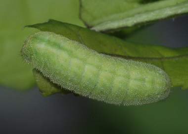 (参考) 幼虫(2齢?、3mm、ノイバラ) 2008年11月8日 大阪府泉南郡岬町 おそらく2齢だと思います。下が頭。ノイバラに見つかった幼虫は全て緑色型でした。 トップページへ |