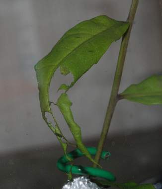 (参考) 終齢幼虫、前蛹、蛹 2008年11月18〜21日 大阪府泉南郡岬町 産 大阪市淀川区 飼育 3齢で採用した幼虫の生態です。全く葉を食べず、柔らかそうな茎に頭を突っ込んで食べていました。そのままその軸で蛹化しました。 トップページへ |