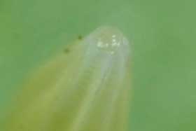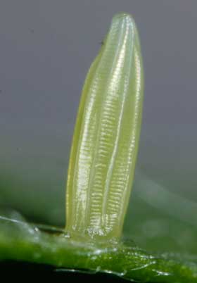 (参考) ヒメシロチョウの卵(高さ1.6mm、ツルフジバカマ) 2016年7月30日 長野県 産まれた卵は細長く感じました。モンキチョウやモンシロチョウの卵より長いです。 トップページへ |