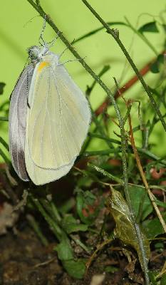 (参考) 羽化直後のヤマトスジグロシロチョウ 2004年5月27日 8:33 大阪府豊能町初谷産 大阪市淀川区飼育 8:22に羽化しました。これはそれから約10分後です。ほぼ翅を伸ばし終えました。 トップページへ |