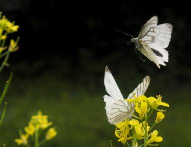 スジグロシロチョウの吸蜜(セイヨウカラシナ) 2004年4月13日 兵庫県尼崎市田能 尼崎市長澤氏撮影 貴重な写真と思います。この辺りで発生できている可能性が出てきました。 トップページへ |