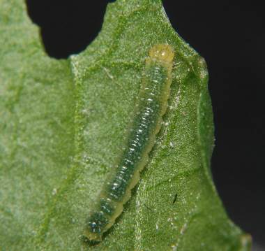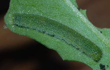(参考) 幼虫(1齢) 2004年5月4日 大阪府豊能町初谷産 大阪市淀川区飼育 ハクサンハタザオの葉を食べて緑色に見えます。 トップページへ |