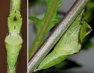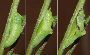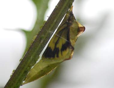 (参考) ヤマトスジグロシロチョウの蛹 2004年5月17日 18:42 大阪府豊能町初谷産 大阪市淀川区飼育 夜には蛹になっていました。 トップページへ |