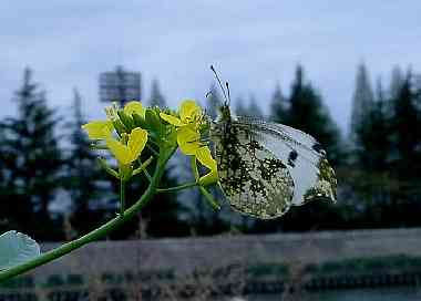 吸蜜 2004年4月17日 兵庫県尼崎市田能5 尼崎市長澤氏撮影 猪名川の河川敷はセイヨウカラシナの黄色で埋め尽くされ、ツマキチョウ、アオスジアゲハ、モンシロチョウが多いそうです。 トップページへ |