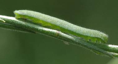 幼虫(3齢?) 2005年5月8日 大阪府豊中市 道路脇カキネガラシ枝上の幼虫です。卵はいっぱいあったのですが、幼虫はこれ以外見つかりませんでした。 トップページへ |