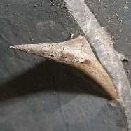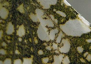 ツマキチョウの蛹 2006年1月4日 大阪府豊中市 上の幼虫を見つけた場所のガードレールで越冬中のツマキチョウの蛹を見つけました(黄色矢印)。通常は草木の枝に蛹化するのでしょうが、保護色と擬態のためにそれではまず見つけることはできません。このような人工物に蛹化する個体は何か異常があるのかもしれませんが、それが私にとっては幸いで、初めて自然状態の蛹を見ることができました。やはり直接雨の当たらないところで蛹化しています。隣には、寄生性のコマユバチの繭の抜け殻がありました(緑色矢印)。100mぐらいガードレールを探して蛹は1匹だけでしたが、繭群は5個以上ありました(下右写真は別の群)。この繭がツマキチョウからのものかどうかは分かりませんが、もしそうだとするとやはり蛹化するのは厳しいようです。なお、ガードレールを探そうと思ったのは、新開孝の観察日記HP「昆虫ある記」のおかげです。 トップページへ |