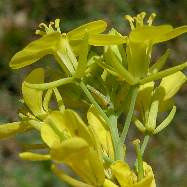カキネガラシ 2003年4月13日 大阪市東淀川区 カキネガラシという名のアブラナ科の植物です。ヨーロッパ原産の帰化植物です。葉に切れ込みがあり、また花穂も分岐します。実は茎に平行につきとがった感じです。花だけの時はスカシタゴボウと思ったのですが間違いでした。ここのツマキチョウの主要食草と思われます。 トップページへ |