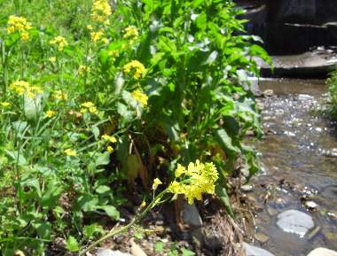 環境 2003年4月19日 大阪府吹田市西御旅町 神崎川左岸の河川敷です。一株だけ大きなセイヨウカラシナがあります。対岸は吹田市中の島公園で緑地になっているようです。 トップページへ |