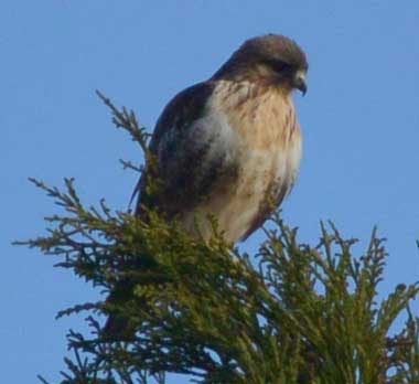 ノスリの静止 2016年12月29日 静岡市駿河区大谷 ごくたまに輪を書いて飛んでいるのを見たことがあるのですが、この時はヒノキの頂部に止まって周囲を見回していました。いかにも強そうな感じがしました。 トップページへ |