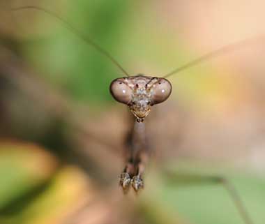 2015年10月3日 静岡市駿河区 突然目の前に茶色の何かが飛んできて木に止まりました。見ると小型のカマキリでした。目がいつも見るオオカマキリやチョウセンカマキリよりも目立ちかっこよく見えたので撮影しました。 トップページへ |