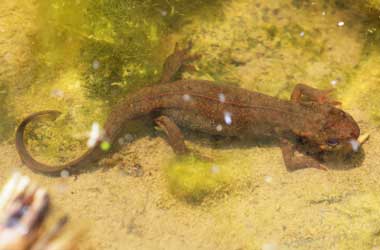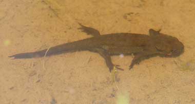 2015年6月13日 静岡市 いるとは思えないような畑の横の水溜りですが、2匹のサンショウウオらしき動物がいました。サンショウウオはこんなところにはいませんね。イモリでしょうか。 トップページへ |