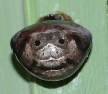 2012年7月21日 静岡市駿河区大谷 ススキでセセリの卵を探していて、見つけました。面白い模様ですが、この種は、鳥の糞には全く似てません。それでもトリノフンダマシ類はいつかみたいと思っていたので嬉しかったです。なお、セセリの卵は見つかりませんでした。 トップページへ |