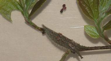 アカボシゴマダラの越冬幼虫(エノキ)