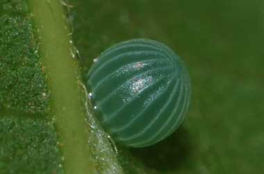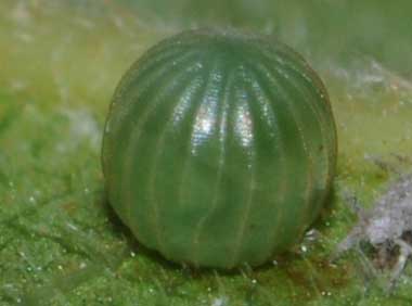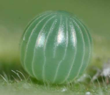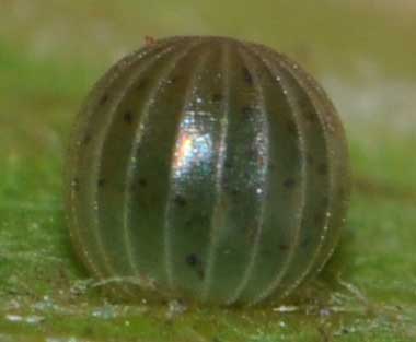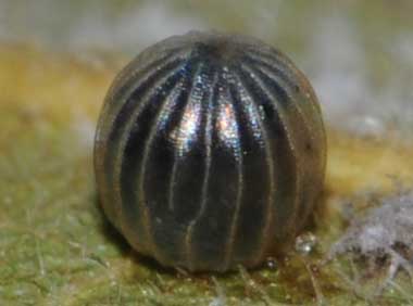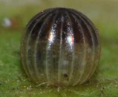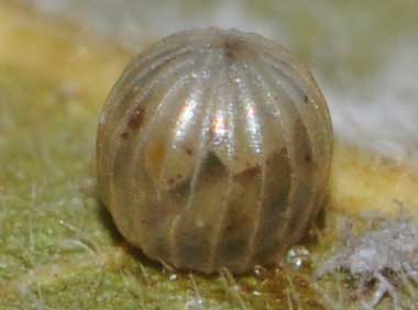 アカボシゴマダラの卵(直径1.3mm、高さ1.4mm)