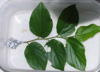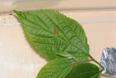 2016年9月17日 撮影 静岡市駿河区 飼育 静岡市駿河区大谷 採卵 個体3。まだ密閉容器で飼っています。葉は長持ちします。 トップページへ |