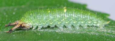 脱皮後間もないアカボシゴマダラの幼虫(3齢)