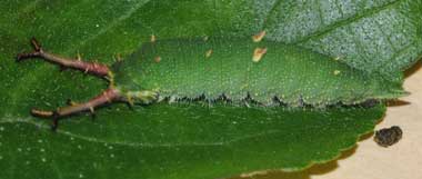 アカボシゴマダラの幼虫(5齢、エノキ)