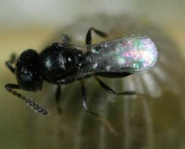 タマゴヤドリバチの仲間(1mm(頭の先から尾端まで))