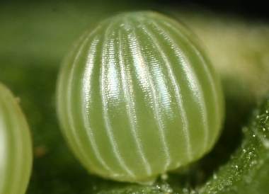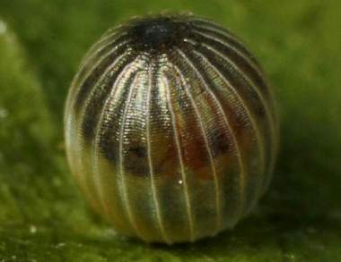 (参考) 孵化間近の卵(直径1.3mm) 2011年8月22日撮影 2011年8月16日産卵 鹿児島県奄美市笠利町 母蝶採集 by T氏 上に示した青い卵と同時に産まれたものですが、少し冷却していたのでその冷え方によって発生の程度が異なるようです。 トップページへ |