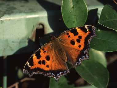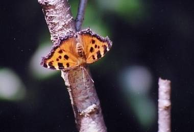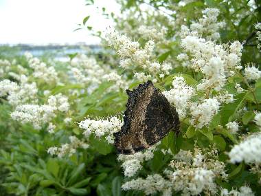 ヒオドシチョウの吸蜜と静止 2002年5月25日 大阪市淀川区 ネズミモチで吸蜜し、その後翅を開いたり閉じたりして静止していたヒオドシチョウです。しばらく吸蜜した後、どこかに飛んでいってしまいました。 トップページへ |