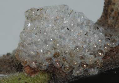 ヒオドシチョウの卵塊(エノキ)