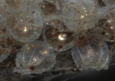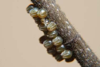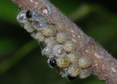 孵化間近のヒオドシチョウの卵塊